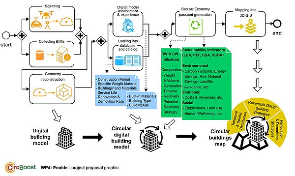 CIRC-BOOST ist ein vierjähriges Projekt, das im Rahmen des Programms „Horizont Europa“ gefördert wird und sich darauf konzentriert, zirkuläre Lösungen in Gebäuden und im Bausektor durch fünf Pilotprojekte in verschiedenen europäischen Regionen zu erproben und in größerem Maßstab umzusetzen. Die Pilotprojekte werden in großem Maßstab neuartige und integrierte Lösungen für den Rückbau, die Aufbereitung von Bauabfällen, deren Management und die Verwertung in neuen Produkten demonstrieren. Das Hauptziel des Projekts ist die Erstellung einer 3D-Webkarte mit Materialbestandsbewertungen, die eine großflächige Einführung des zirkulären Bauens ermöglicht.