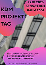 Am 29. Januar 2026 fand wieder einmal der KDM-Projekttag statt, mit dem wir traditionell das Semesterende gemeinsam feiern. In fast zwei Stunden multimodalem Programm haben die KDM-Studierenden des 1. und 3. Semesters ihre Semesterprojekte der Kurse Urbanes Labor sowie Transfer und Vernetzung präsentiert.