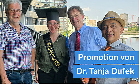 Bei der Disputation waren über 60 Personen anwesend, selbst eine Delegation aus Indonesien reiste an und zahlreiche Industrie- und Forschungsvertreter:innen nahmen teil. Tanja Dufek war über 10 Jahre eine bedeutende Figur der Hydrographie an der HCU, ohne sie würde es das Studienprogramm als Spezialisierung im Master Geodäsie und Geoinformatik und das hauseigene Forschungsschiff DVocean in der heutigen Form nicht geben. Seit Anfang 2025 ist sie als Senior Geodata Advisor beim Unternehmen Fugro tätig.