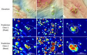 In ihrer Promotion befasste sich Tanja Dufek mit dem automatischen Aufspüren von Sulfidhügeln, sog. „Schwarzen Rauchern“, in der Tiefsee. Diese Hügel entstehen dort, wo hydrothermale Fluide (heiße wässrige mit Metallen angereicherte Lösungen) aus dem Meeresboden austreten. Sie sind als potenzielle Quelle metallischer Rohstoffe von besonderem Interesse. Bisher orten Forschende solche Hydrothermalquellen meist, indem sie Veränderungen in der chemischen Zusammensetzung des Meerwassers feststellen. Tanja Dufek hat jetzt einen auf KI basierten Ansatz entwickelt, durch den anhand von Fächerecholot-Daten (also Sonarmessungen des Meeresbodens) erkennbar wird, wo sich vermutlich „Schwarze Raucher“ befinden. Ihr Ansatz funktioniert nicht nur bei aktiven, sondern auch bei erloschenen Quellen.
