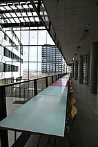 Für Lerngruppen gibt es im Hauptgebäude gemütliche Orte zum Arbeiten. Wenn Sie sich in einer entspannten Atmospfähre austauschen wollen, nutzen Sie gerne die Arbeitsplätze und die Ruhezone in der Cafeteria. Es stehen Ihnen mehr als 48 Arbeitsplätze mit einem Stromanschluss zur Verfügung.